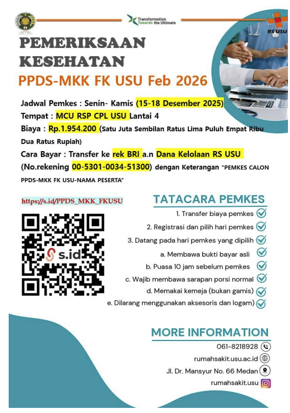 PENGUMUMAN PEMERIKSAAN KESEHATAN CALON PPDS-MKK FK USU PERIODE FEBRUARI 2026